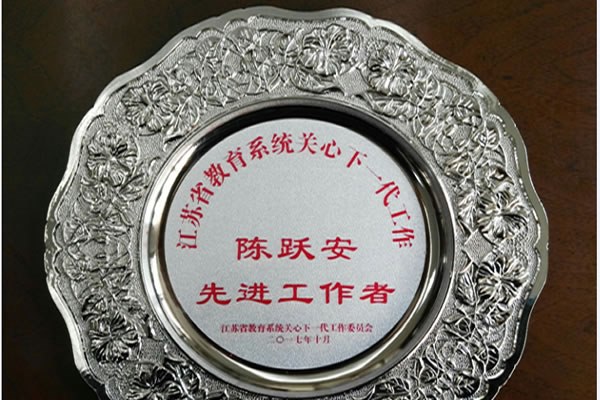 在12月6日至8日(rì)舉行的江蘇省高校係統關工委負責人培訓班上,我校陳躍安老師(shī)獲“江蘇省教育係統關心下一代工作先進工作者(zhě)”榮譽稱(chēng)號,這是對我校關工委工作以及(jí)多年來陳老師的積極奉獻的一次肯定。