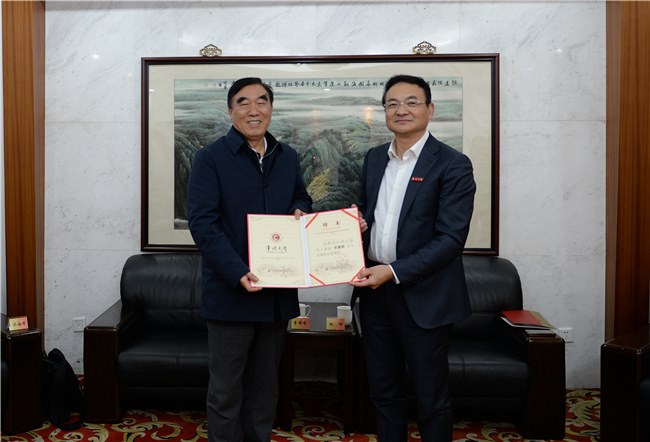 會前,陳群為曹耀峰(fēng)院士頒發了我校(xiào)名譽教授證書。(通訊員/ 嵇煒  編輯/莊媛)