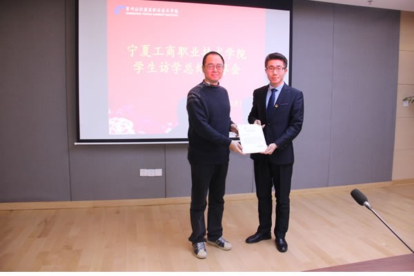 在分享會(huì)上,陳光曙、鄧凱分別為寧夏老師(shī)、學生發放了常州紡織服裝職業技(jì)術學院結業證書、訪學證書。鄧凱代表我校,向同學們提出了追求人生三個維度的要求,即(jí)邀追求學業的深度、追求人生(shēng)的寬度(dù)、追求人生的高度。
