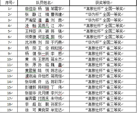 2017年“華為杯”中國研究生數學建模競賽(sài)獲獎名單http://gmcm.seu.edu.cn/01/5b/c12a347/page.htm