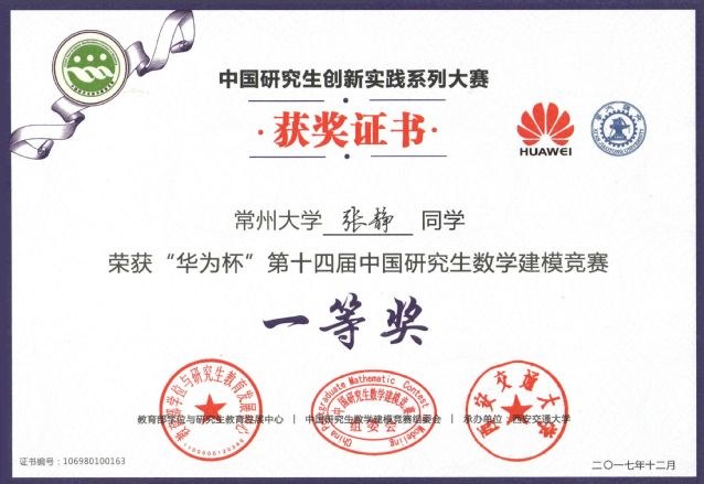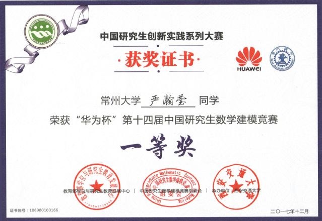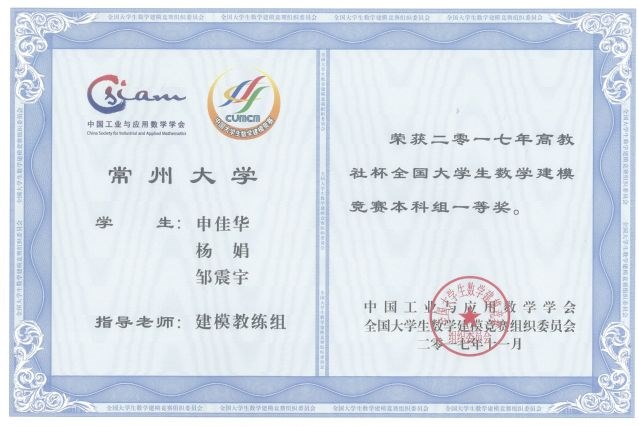 常州大學:我校獲得2017年全國大學生、研究生數學建(jiàn)模(mó)競賽3項一等獎