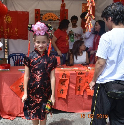 這是在(zài)委舉辦的第二屆新春廟會(huì),常大孔子學院的教師連續在兩屆廟會中擔任開幕式的主持,孔院(yuàn)的學生們通過詩朗誦《靜夜思》、《元(yuán)日》、《滿江紅》以及歌(gē)曲《茉(mò)莉花》、《康定情歌》等節目,展示自己對中國文化的熱愛和理解。除了開幕式(shì)精彩的表演,常大孔院還搭(dā)建了六米的(de)大(dà)展台,展示各色中國元素:傳(chuán)統的手(shǒu)寫(xiě)春聯、喜慶的燈籠(lóng);赤青藍紫的京劇臉譜、常州特產梳篦(bì)等等,令隻知“中國功夫”的(de)當地民眾(zhòng)驚歎中國文化的(de)豐富多彩。孔院的委內瑞拉學生身著統一服飾,為(wéi)來賓介紹孔子、孔院,宣傳他們眼中新(xīn)時代的中國。展台上大量中文圖書以及有關中國的書籍同樣深(shēn)深吸引著到場來賓,對漢語和中華文化產生了濃厚的興趣,紛紛谘詢孔(kǒng)院的辦學情況,計劃報名學習漢語。