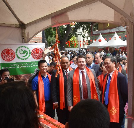 戊戌狗年之始(shǐ),江南大(dà)地瑞雪慶春,2月18日,由委京中華會館和委(wěi)青(qīng)聯合會主辦、常州大學玻利瓦爾大學孔(kǒng)子學院等單位承辦的2018新春廟會在委內瑞拉首都加拉加(jiā)斯隆重舉行。中國駐委內瑞拉大使李寶榮、委內瑞拉國防理事會秘書長(zhǎng)安希奧利略(luè)上將、外交(jiāo)部副部長普拉森西亞、文化部副部長索迪略、加拉加斯查考市市長杜克以及旅委華人華僑和當地民眾2000多人(rén)出席,共慶新春佳節。李寶榮在開幕式上致辭中向來賓介紹了春節的(de)由來,並由衷感謝(xiè)馬杜羅總統向中國人(rén)民(mín)和旅委華僑華人送上的新春祝福,衷(zhōng)心祝願中委兩國繁榮昌(chāng)盛、人民幸福。