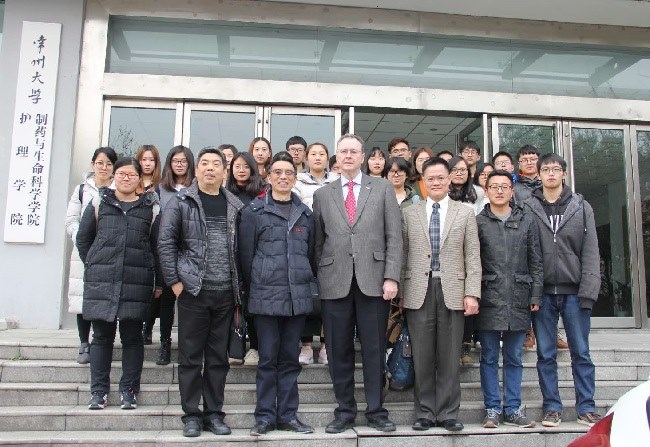 3月15-18日,美國紐(niǔ)約州立大學布法羅分校藥(yào)學院院長James M. O'Donnell博(bó)士一行來我校進行了教育和學術交流活動(dòng),一起來訪的還有美國西弗吉利亞(yà)大學醫(yī)學院教授張漢霆博士、布(bù)法羅藥(yào)學院教授徐英(yīng)博士。在校訪問期間,我校黨委書記程純會見了O'Donnell院長一行,並聽取了O'Donnell博(bó)士團隊與製(zhì)藥學院(yuàn)兩年來在科研及師生培養等方麵合作成果的簡要匯報。程純充分(fèn)肯定了“團隊對團隊”的國際合作模式(shì),感謝O'Donnell博士團隊(duì)對(duì)我校(xiào)相關學科建設的支持與幫助,希望能繼續擴大合作與交流,共同建設好我校神經科學研究中心,加快我校藥學和基礎醫學學科建設。