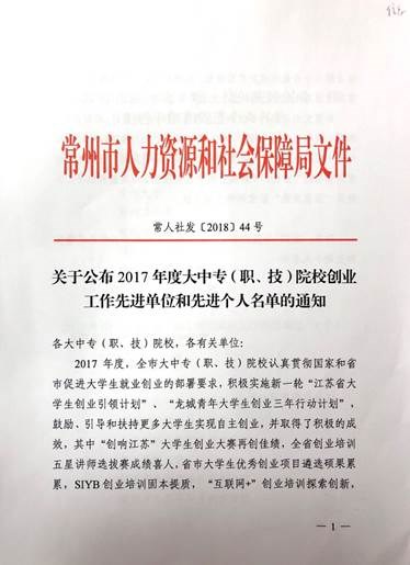 會議對(duì)2017年常州市(shì)學校就創業工作進行總結和表彰,並圍繞創(chuàng)業培訓(xùn)實施、創業項目征(zhēng)集和創業載體建設等內容對2018年的工作進行規劃部署。會上,我校創新創業教育工作得到常州市人力資(zī)源和社會保障局的充分肯定,學校(xiào)被評為“2017年度創業工作先進單位”,駱(luò)建建(jiàn)、江新兩位(wèi)老師被評為(wéi)“2017年度創業(yè)工(gōng)作先進個人”,尹麗潔老(lǎo)師獲(huò)評(píng)“江蘇省三星創業培訓講師”,朱斌同學的“基於互(hù)聯網+的企業整合營(yíng)銷”和(hé)張金鑫(xīn)同學的“成(chéng)人教(jiāo)育題庫APP” 兩個項目獲評“2017年常州市(shì)大學生優秀創業項(xiàng)目(mù)”,得到專項資助。