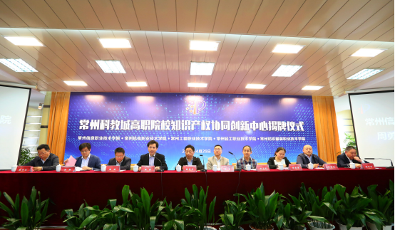 常(cháng)州市知識產權局局長楊偉紅,科(kē)教城管委會副(fù)主任郜(gào)軍共同為中(zhōng)心揭牌,出席儀式的5所高職院校共(gòng)同簽訂了《常州科教城高職院校知識產權戰略合作框架協議》。
