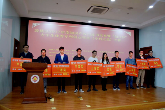 4月(yuè)26日,由江蘇省發明協會、江蘇省高等學校知識產權研究會聯合舉辦的(de)“閱江杯(bēi)”大學(xué)生優秀專利創業項目大賽在南京舉行了頒獎儀式。
