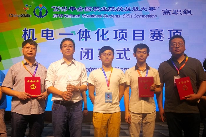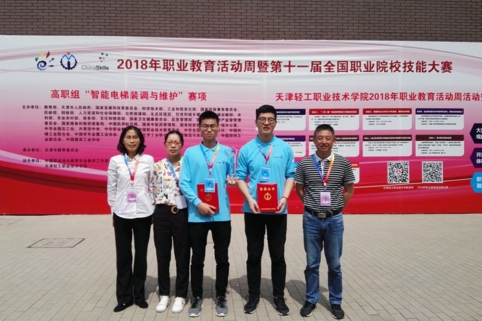 5月6-8日(rì),2018年全國職業院校技能大賽高職組“智能電梯裝調與維護”賽(sài)項、“機電一體化(huà)項目”賽項在天津舉行,來自全國近30個省區的幾(jǐ)十(shí)支代表隊展開激烈角(jiǎo)逐。我院電氣工程與技術學院張建根、餘芬老師指導的劉偉、朱磊同學組成的參賽隊及顧六平、沈治老師(shī)指導的江海天、段德科同學組成的參賽隊在比(bǐ)賽中沉著應戰,充分發揮訓(xùn)練水平,以優異(yì)成績雙雙獲得大賽一(yī)等獎!