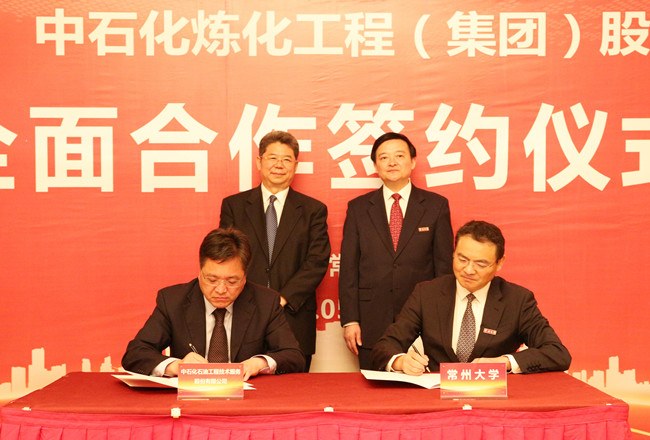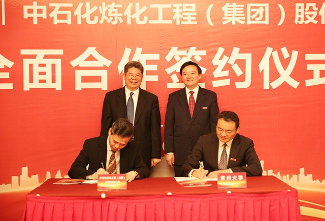 陳群代表學校分別與中石化石油工程技術服(fú)務股份有限公司和中石化煉化工程(chéng)(集團)股份有限公司簽署了全麵合作協議書,並為孫(sūn)清德(dé)和陸東頒發了常州大學客座教授聘書和校徽。