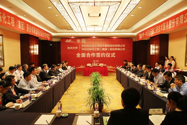 5月12日上午,常州大學分別(bié)與(yǔ)中石化石油工(gōng)程技術服務股份有限公司(簡稱SSC)、中(zhōng)石化煉化工程(集團)股份有限公司(簡稱SEG)合作簽約儀式(shì)隆重舉行。中石化(huà)集團公司黨組成員、副總經理馬永生院士(shì),中石化石油工程技術服務股份有限(xiàn)公司(sī)副董事長、總經理孫清德,中石化煉化工(gōng)程(集團)股份有限(xiàn)公(gōng)司副董事長、黨委書記陸東,常州大學黨委書記程純,黨委副書記、校長陳群(qún)出席了簽約儀式(shì)。中石化集團公(gōng)司及下屬企業的領導和專家(jiā)代表及我校相關職能部門、學院負責人和教師代表(biǎo)參(cān)加了活動。儀式由副(fù)校長蘇旭平主持。
