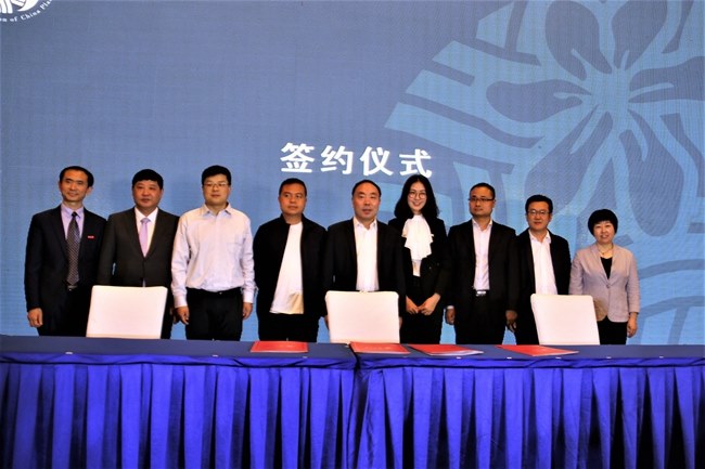 在中國(guó)植物染(草木染)產業聯盟主(zhǔ)席馮德虎、常州市人民政府副秘書長李皓、常州市天寧區委書記宋建偉、常州市天寧區區委(wěi)常委、天寧經濟開發區黨工委書記曹誌偉、常州市天寧區人民政府副區長周登蓉、常州大學黨委常委、紀委書記邱正祥和中國植物染(草木染)產業聯(lián)盟大會全體會員見(jiàn)證下(xià),常州藝染生物科技有限公司總經理戴繁(fán)琢分別與貴州省丹寨縣(xiàn)排調鎮排調村錦綠產業扶貧專業合作社薑小軍、陝西省安康旬陽高新技術開發區黨工委副(fù)書記曹雲華共同簽署扶貧合(hé)作協議。(通訊員/李明娟 編輯/莊媛)