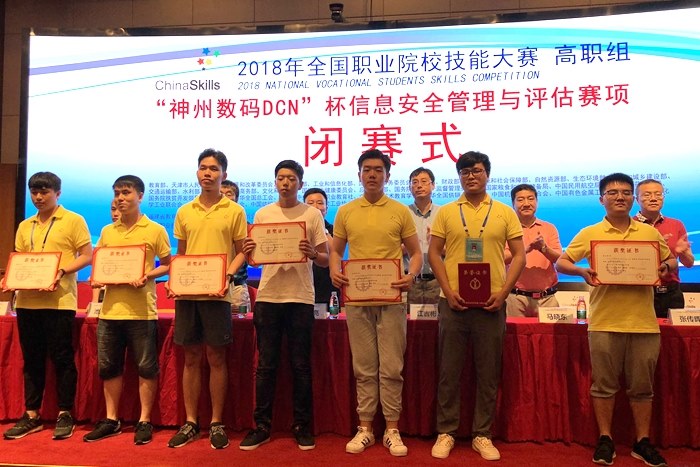 5月29日(rì),2018年全國職業(yè)院校技(jì)能(néng)大賽“神(shén)州(zhōu)數碼DCN”杯“信息安全管理與評(píng)估”賽項在福建平潭舉行,我院代表隊(duì)榮獲三等(děng)獎(jiǎng)。