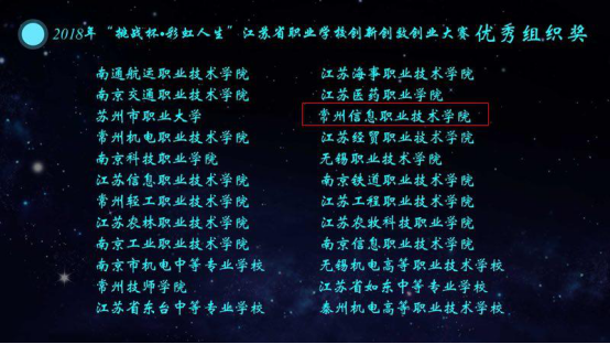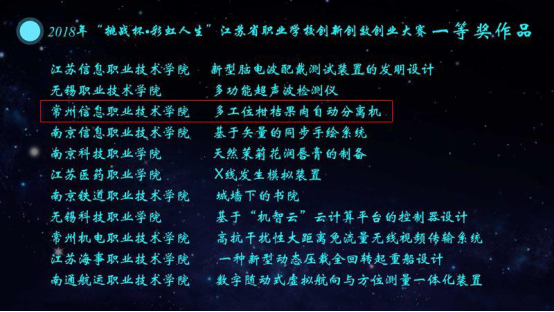 常州信息學院:我校在2018年“挑(tiāo)戰杯-彩虹人生”江蘇省職業學校創新創效創業大賽中斬獲特等獎