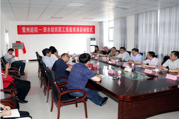 6月27日上午(wǔ)九點,江蘇省輕紡(fǎng)財貿工會、常州(zhōu)紡織服裝職業技術學院(yuàn)、江蘇泗水紡織有限公司三方合作的“常州紡(fǎng)院-泗水紡(fǎng)織職工技能(néng)培訓(xùn)工作站(zhàn)”啟動儀式在泗陽舉行,省(shěng)財貿工會李林森主任,省紡織協(xié)會韓平副會(huì)長,泗陽縣委常委、組織部張大(dà)江部長等省、市、縣各級工會領導及我校蔣心亞院長、張文明副院長出席啟動儀式。這次(cì)活動也開啟了我校二次攜手泗陽(yáng)總工會開(kāi)展“精準對接”工作的新(xīn)篇章!