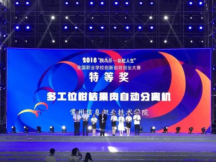 “挑戰杯——彩虹人生”全國職業學校創新創效創業大賽是(shì)“挑(tiāo)戰杯”競賽在職業學(xué)校中的拓展。大賽自2014年開始舉辦,每兩年舉行(háng)一次,旨在增強職校學(xué)生的社會責任感、創新精神和實踐能力,促進“工匠精神”的廣泛傳播,發(fā)掘和(hé)培養一批創新創效創業高素質技能人(rén)才。本屆大賽以“慧(huì)聚青春夢想彩(cǎi)虹”為主題(tí),全國共有31個省(自治區、直轄(xiá)市)556所學校的(de)929件作品進入複賽。經複賽評審,293所學校的370件作品最終(zhōng)進(jìn)入終審決賽。我校嶽東海、吳振明、郭偉老師指導,湯雨龍、陳俊、鄂曉雨、薑吉宇、馬鬆琳、楊晨6位同學報送的《多工位柑桔果肉自(zì)動分離(lí)機》作品獲得大賽特等(děng)獎,由我校孫磊厚(hòu)、宋誌國、郭偉老師(shī)指導,付相為、曹青、曹楷文3位同(tóng)學(xué)報送的(de)《卡(kǎ)車油箱(xiāng)智能防盜係統(tǒng)》作品獲大賽一等獎(jiǎng)。