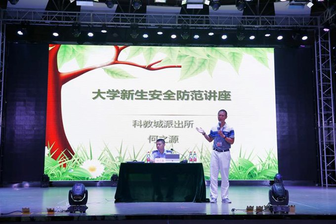 三位警官重點從生(shēng)命安全、違法(fǎ)犯罪、財(cái)產安全等方麵,列舉(jǔ)了發生在(zài)科教城(chéng)的鮮活典型案例,指導新生(shēng)如何預防(fáng)與應對。從大學生失聯案例引入,提(tí)醒同學們增強自我保護意(yì)識,提高預見危害能(néng)力(lì);列(liè)舉發生在周邊的打架、盜竊案例讓同學們明白(bái)哪些行為是(shì)屬於違法的,哪些行為是屬於犯罪的,告誡新生們要管理好自己的情緒及個人(rén)行為;重點對“刷(shuā)信譽兼職”、 “網上購物”、“冒充QQ微信好(hǎo)友”等在學生中高發的網絡詐騙、電信詐騙等形式進(jìn)行講(jiǎng)解,將防騙招數通過情景再現生動、形象(xiàng)地展示給廣大新生,倡(chàng)導同學們在今後遇到類似情況,要(yào)牢記(jì)“六個一律”;此外還提醒同學們加強(qiáng)個人信息管理、樹立正確(què)的消費觀念,不要涉(shè)足“校園貸(dài)”,培養健康良好(hǎo)的生活(huó)習慣。