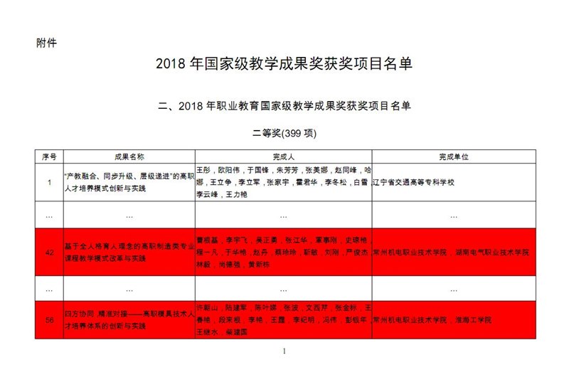 近日,教(jiāo)育部公(gōng)布了2018年職(zhí)業教育國家級(jí)教學成果獎獲獎項目,我校申報的《基於全人格育人(rén)理念的高職製造類(lèi)專業課程教學模式改革與實踐》和《四方協同,精準對接——高職模具(jù)技術人才培養體係的創(chuàng)新(xīn)與實踐》被授予二(èr)等獎。