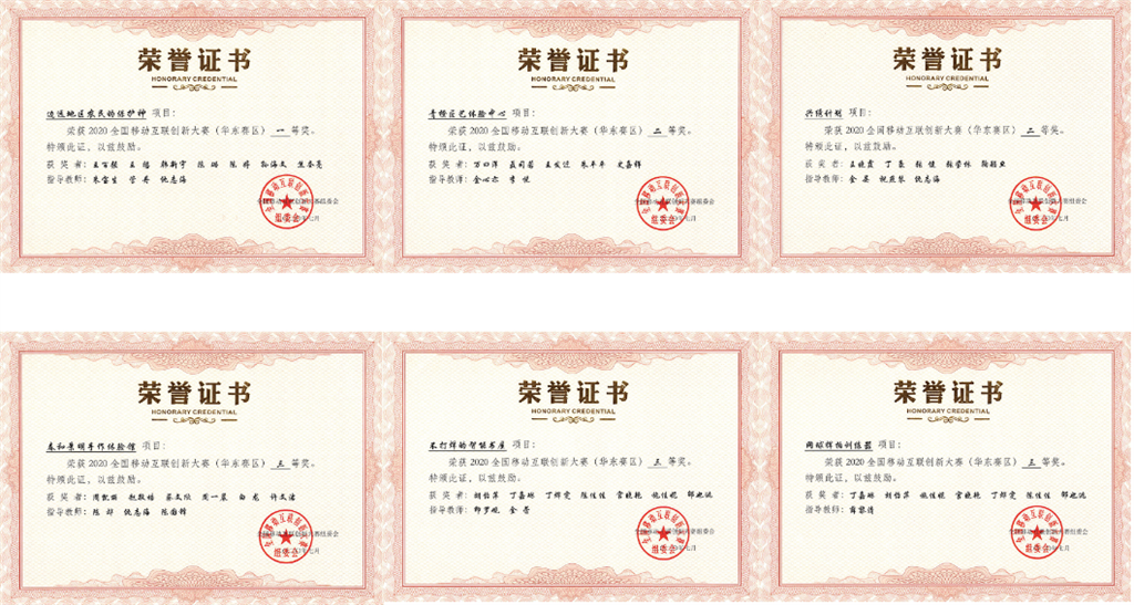 近日,第六屆移動互聯創新大賽區域賽落下帷(wéi)幕。由創新創業學(xué)院牽頭、各二級學院積極組織推薦(jiàn)的6個項目獲得華東賽區一(yī)等獎1個、二等獎2個、三(sān)等獎3個,學(xué)校獲得華(huá)東賽區優(yōu)秀組織獎。