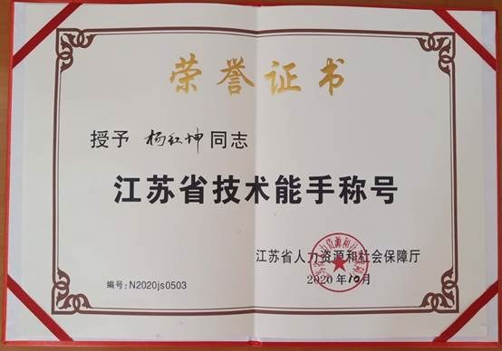 常(cháng)州(zhōu)工程學院:我校2017屆畢業生(shēng)楊紅坤榮獲“江蘇省技術能(néng)手”稱號