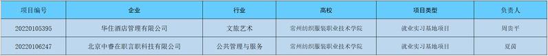 近日,教育(yù)部發布了《教育部高校學生司關(guān)於公布(bù)第一期供需(xū)對接(jiē)就(jiù)業育人項目立項(xiàng)名單的通知》(教學司函(hán)〔2022〕7號文件),公布了第一期供需對接就業育人項目立項名單。常州紡織服裝職業技術學院(yuàn)的酒店管理與數字化(huà)運營專業與華住酒店管理有限公(gōng)司、市場營銷專業與北京中睿在職言職科技有限公司(sī)對(duì)接的2個就業實(shí)習基地項目順利通過審批,獲準立(lì)項(xiàng)。